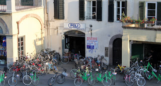 Her kjøpte jeg en flaske av den dyreste vinen jeg har kjøpt her nede. Den skal nytes de siste dagene før jeg igjen forlater Lucca. En liten flaske god olivenolje får være med i bagasjen hjem, sammen med Limoncella fra Sorrento. Fine souvenirer.