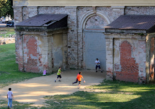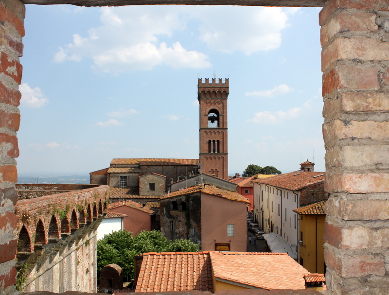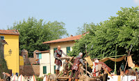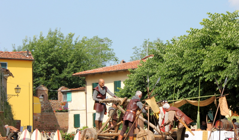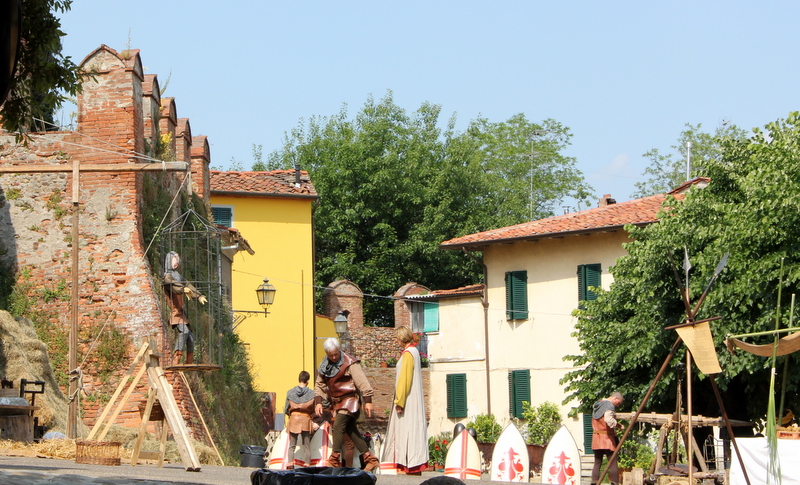 På vei tilbake til bilen, oppdaget vi at det foregikk saker og ting i Montecarlo denne lørdagen. På torget gjorde folk seg i stand til å spille et middelalderspill. På spørsmål om når spillet skulle begynne, fikk vi til svar: "Just now". Mens vi ventet på at det skulle bli "just know" klatret jeg til topps i borgen og tok noe bilder fra høyden: