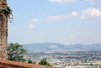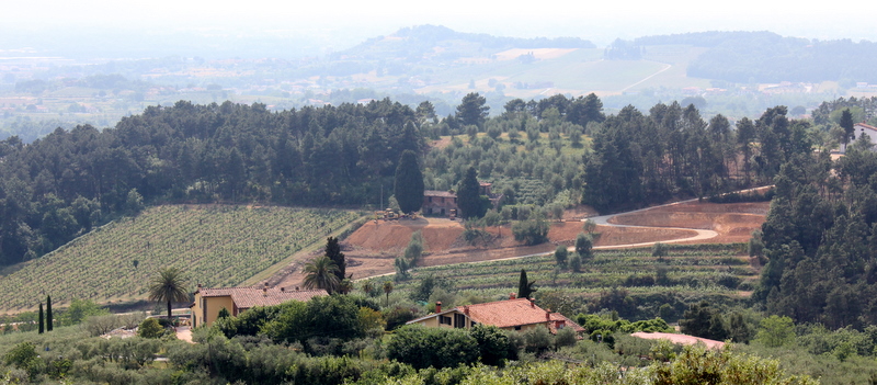 Hit dro min venninne Paula, engelsk dame som er i ferd med å gjøre italiener av seg, og jeg i går for å spise lunch. Hun er kjent i området, og tok meg med til en pizzeria. Fra terrassen her hadde vi utsikt til et toscansk landskap slik jeg tidligere bare har sett på postkort: