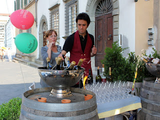 Vi oppdaget at dette også var dagen for Montecarlos årlige Via Vinaria, vinsmaking hos lokale vinprodusenter i området. Montecarlo er kjent for gode viner. Gratis busser som kjørte mellom de forskjellige fattoriaene, var satt opp.