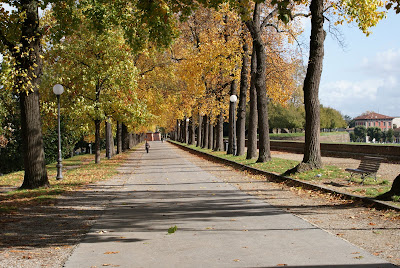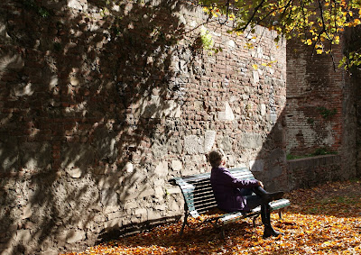 Værmeldingen sa regn. Men det ble det ikke. Det ble en utmerket dag for vandring på muren for å nyte solen, utsikten, og å sparke i høstløvet. Etter å ha travet noen dager i labyrintgatene nede i sentrum, hvor selv Rolf mister retningssansen, var det fint igjen å få et overblikk både over selve byen, og over områdene utenfor muren.