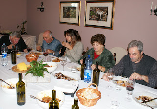 Det har tatt tid på presseriet - det er så vidt vi rekker hjem til en rask dusj før vi alle møtes igjen til middag på restaurant Olivo. Kåre har bestilt full italiensk middag med tilhørende viner - en fantastisk skalldyrsuppe, to pastaretter, biff eller lam til hovedrett, pannacotta til dessert, og kaffe. Musserende vin før maten, hvit og rød til maten, dessertvin, grappa eller annet til kaffen.