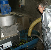 Siste sjanse for Renzo til å plukke ut rusk som ikke skal med i presseprosessen. Når olivenene har passert denne posten, er det for oss bare å vente - på dette: