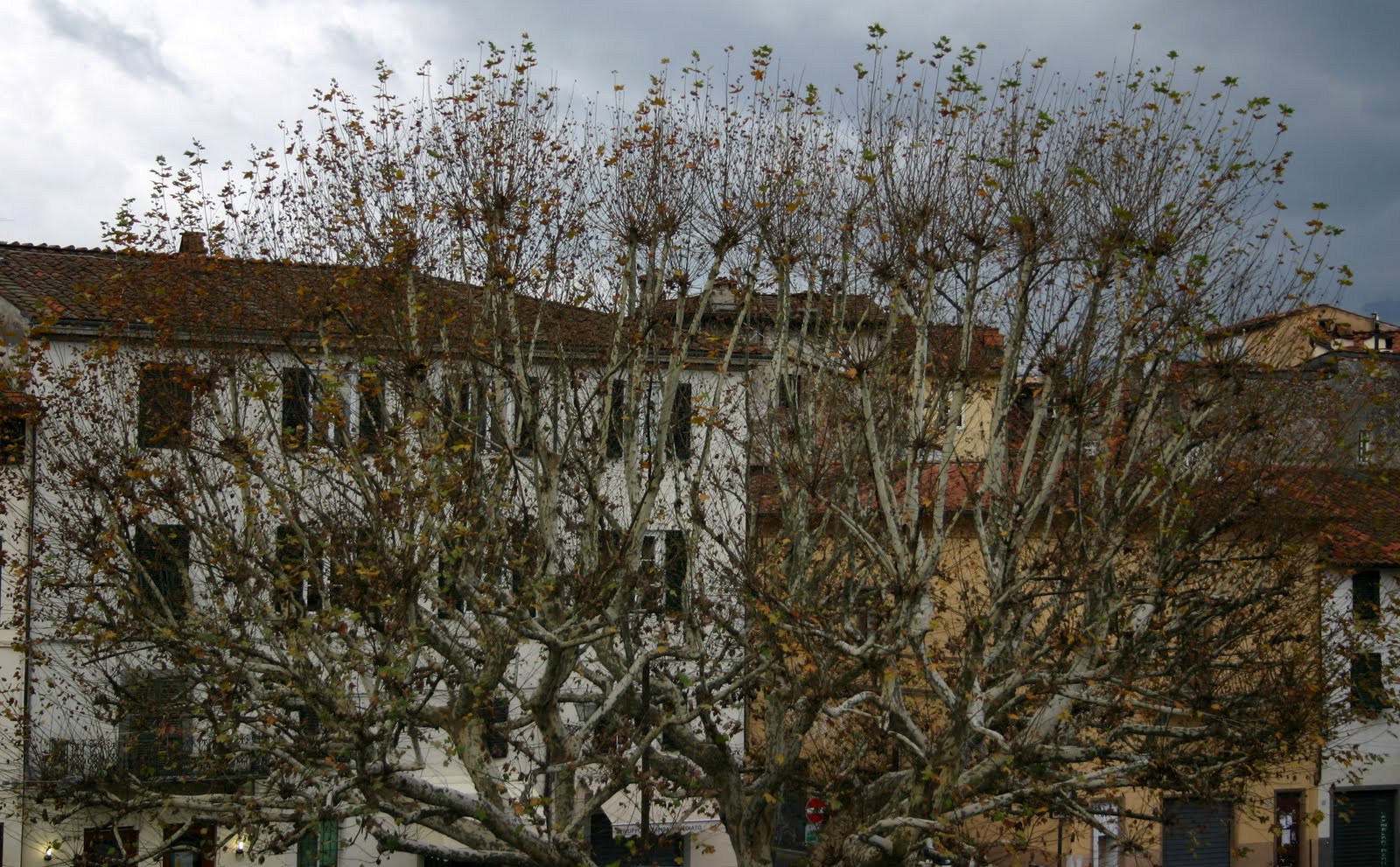 Etter at jeg i morges hadde pakket og forsikret meg om at jeg får med meg hjem det jeg trenger, ruslet jeg en sakte tur på muren - for siste gang. Jeg har vist deg muren i høstfarger, nå står de fleste trærne nakne som flotte skulpturer mot en gråblå himmel. Bare noen få høstgyldne blader klamrer seg fortsatt fast. Jeg liker nakne trær, synes det er noe kraftfullt over dem. Her er et jeg likte godt:
